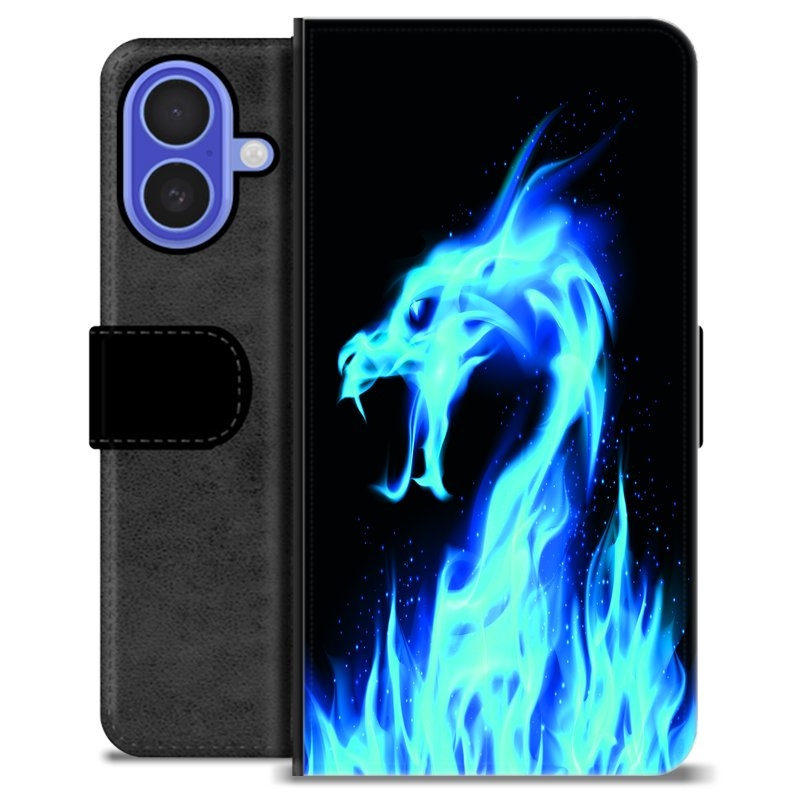 Étui Portefeuille Premium iPhone 16 - Dragon Feu Bleu