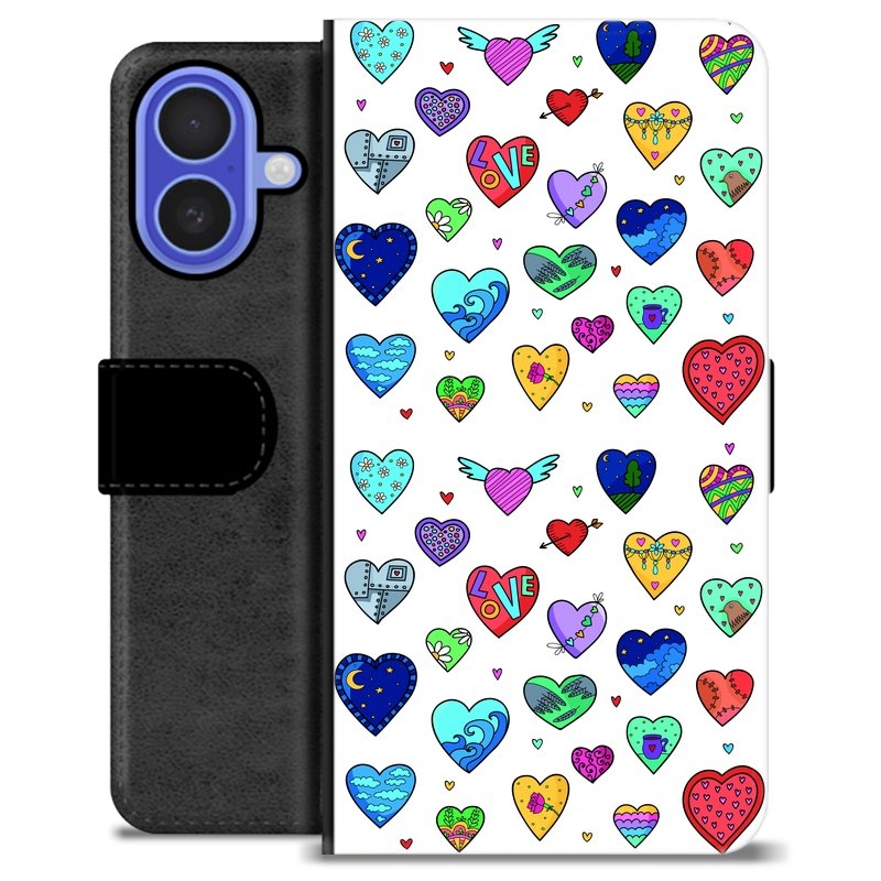 Étui Portefeuille Premium iPhone 16 - Cœurs