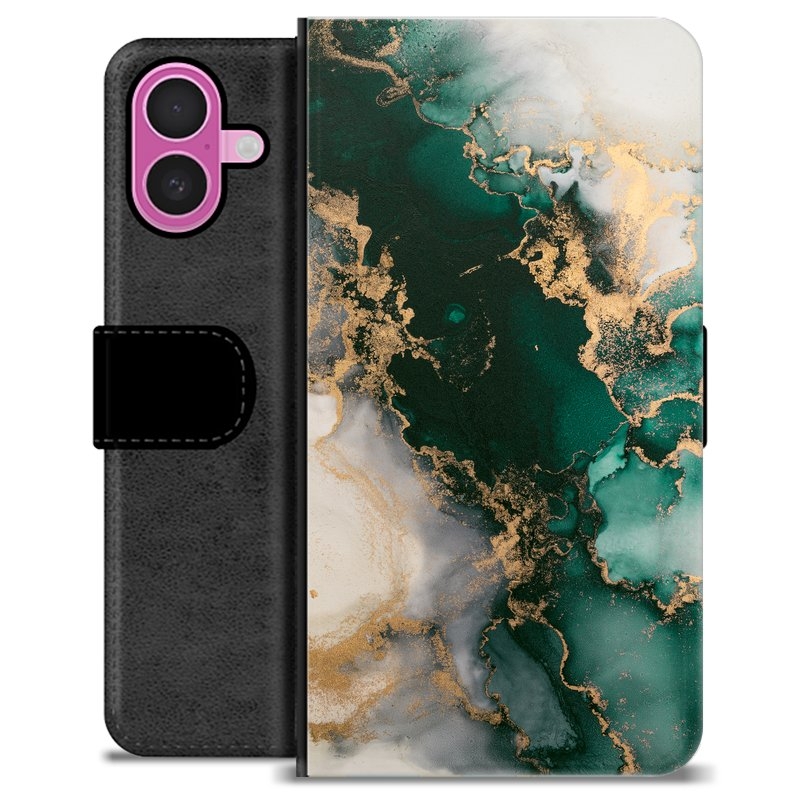 Étui Portefeuille Premium iPhone 16 Plus - Marbre Jade