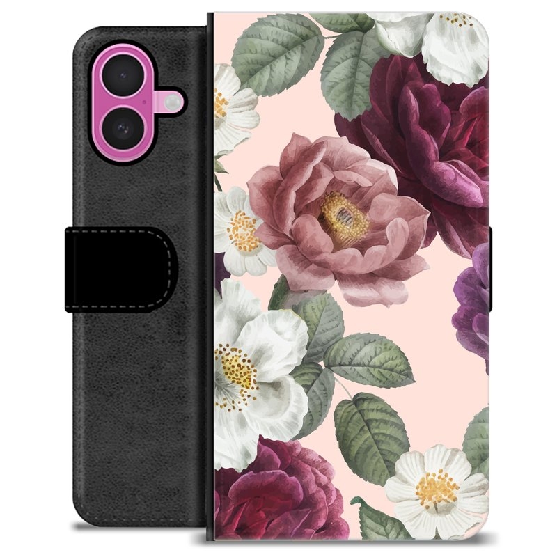 Étui Portefeuille Premium iPhone 16 Plus - Fleurs Romantiques
