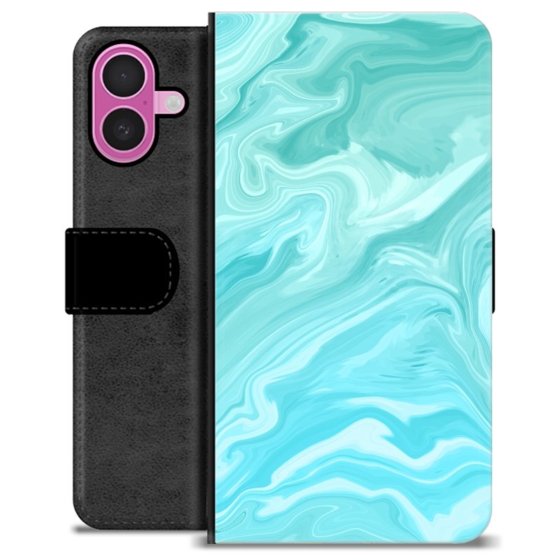 Étui Portefeuille Premium iPhone 16 Plus - Marbre Bleu