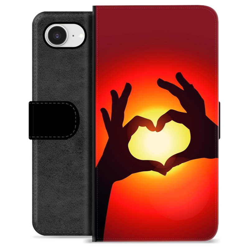 Étui Portefeuille Premium iPhone 16e - Silhouette de Coeur