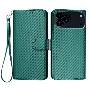Etui portefeuille premium avec sangle pour iPhone 17 Pro - Texture fibre de carbone