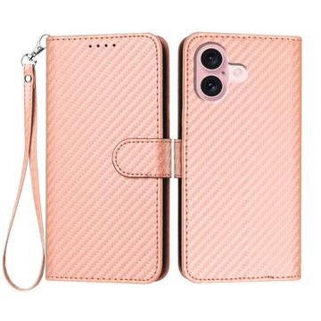 Etui portefeuille premium avec sangle pour iPhone 16 - Texture fibre de carbone