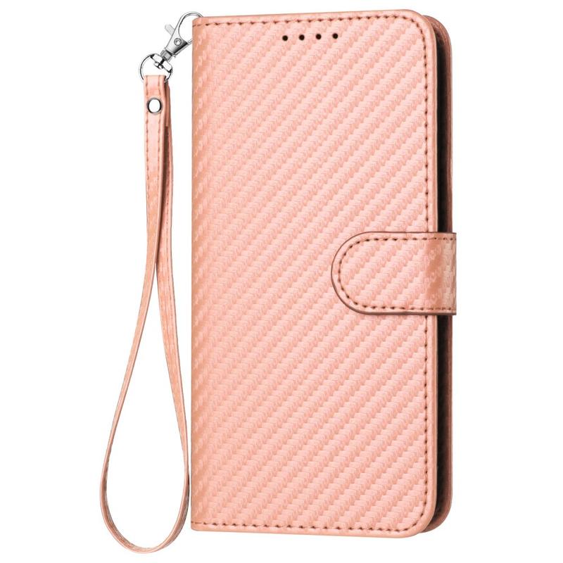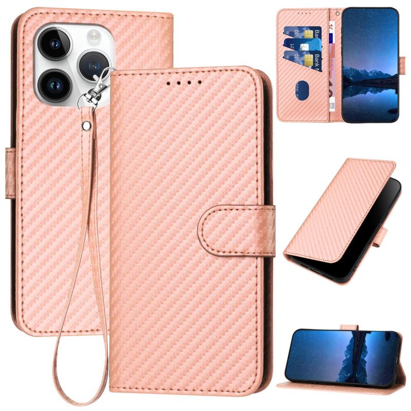 Etui portefeuille premium avec sangle pour iPhone 15 Pro Max - Texture fibre de carbone