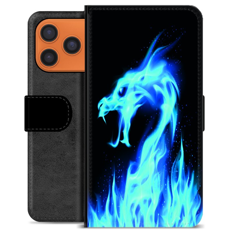 Étui Portefeuille Premium iPhone 17 Pro Max - Dragon Feu Bleu