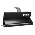 Donnez à votre nouveau Samsung Galaxy M56 un look raffiné et vintage tout en remplaçant votre portefeuille de tous les jours. L'extérieur en polyuréthane à la texture Crazy Horse s'associe à une coque TPU absorbant les chocs pour protéger contre les chutes et les rayures, tandis que des poches astucieuses permettent d'organiser les cartes et l'argent.