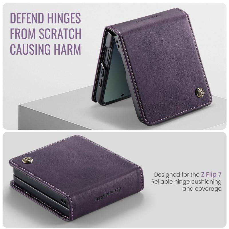 Étui portefeuille en texture de veau avec blocage RFID et fonction support Caseme 033 pour Samsung Galaxy Z Flip7
