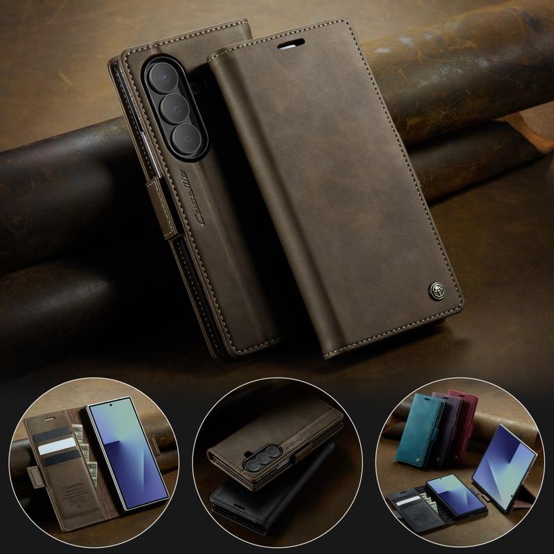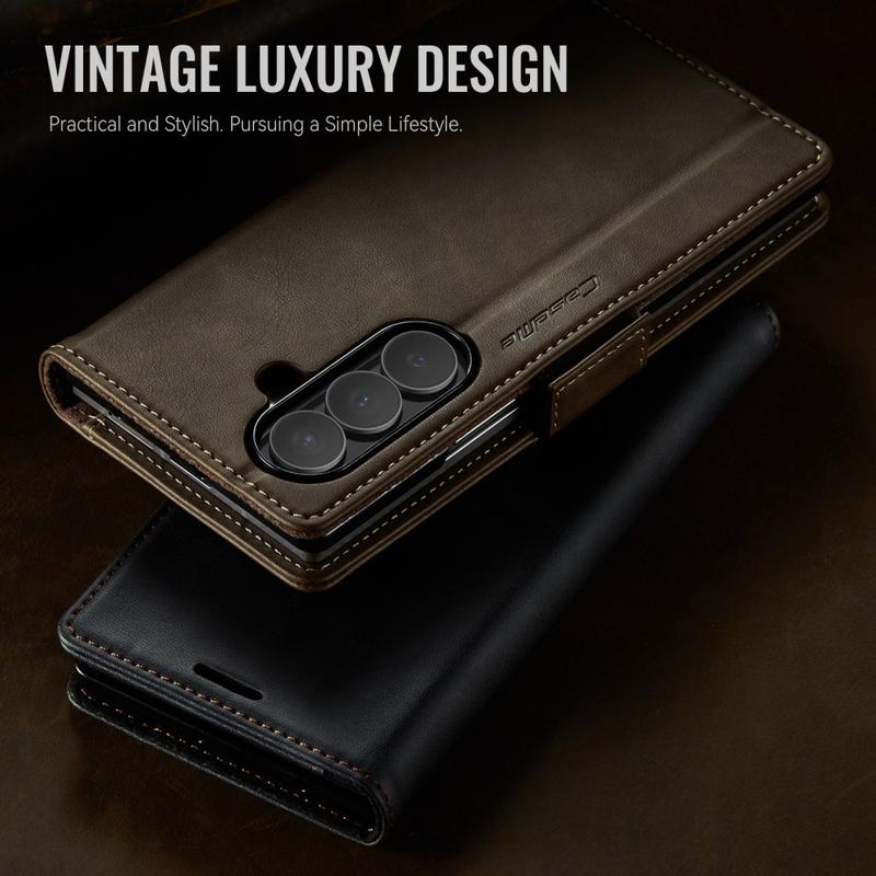 L'étui CASEME 033 Series Wallet Case pour Samsung Galaxy Z Fold7 est fabriqué en polyuréthane texture veau combiné à du TPU, offrant une protection intégrale contre les rayures, les chocs et l'usure quotidienne tout en conservant un aspect premium et élégant.