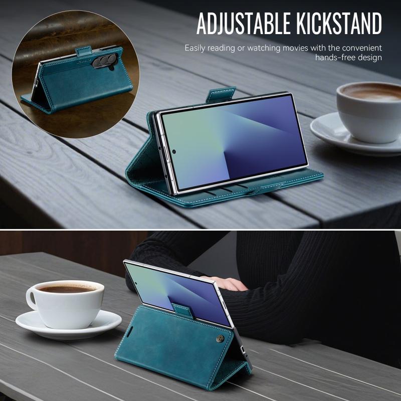 L'étui CASEME 033 Series Wallet Case pour Samsung Galaxy Z Fold7 est fabriqué en polyuréthane texture veau combiné à du TPU, offrant une protection intégrale contre les rayures, les chocs et l'usure quotidienne tout en conservant un aspect premium et élégant.