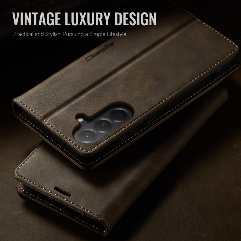 L'étui CASEME 033 Series Wallet Case pour Samsung Galaxy A57 est fabriqué en polyuréthane texture veau combiné à du TPU, offrant une protection intégrale contre les rayures, les chocs et l'usure quotidienne tout en conservant un aspect premium et élégant.