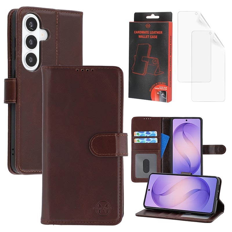 MyTPhone CardMate Premium étui portefeuille en cuir pour Samsung Galaxy S26+ - Stand, porte-cartes, recharge sans fil, 2 protections d'écran