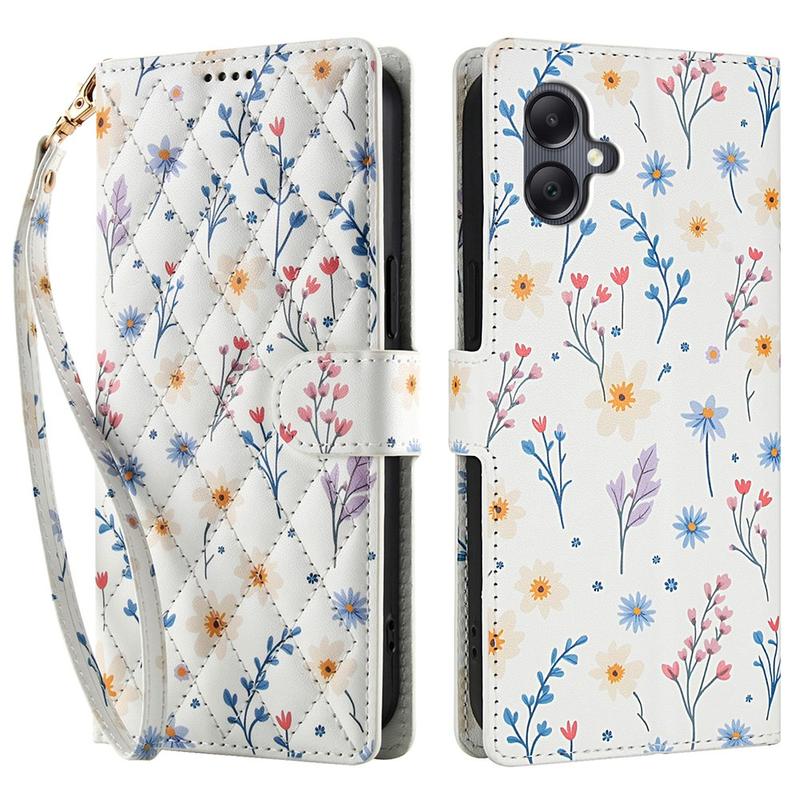 Étui portefeuille à motif floral rhombique pour Samsung Galaxy A07 4G - avec dragonne et fentes pour cartes