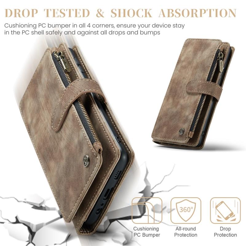 The Caseme C30 multifunctional wallet case for Samsung Galaxy A15 brings exceptional all-around protection and an exclusive, refined design. This elegant case is made of premium polyurethane, reinforced with a shock-resistant TPU inner cover that snuggles your Samsung Galaxy A15 perfectly. Meanwhile, the Caseme C30 wallet case is enhanced with numerous card slots, one large money compartment inside, and one outside zipper pocket, all protected by a secure magnetic closure.