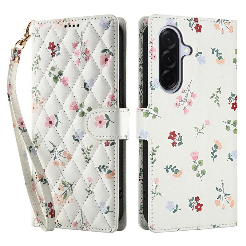 Étui portefeuille à motif floral rhombique pour Samsung Galaxy A37 - avec dragonne et fentes pour cartes
