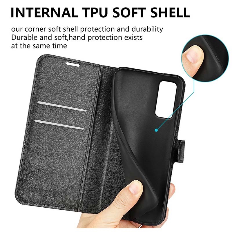 Cet étui portefeuille haut de gamme pour Samsung Galaxy S20 5G améliore l'expérience utilisateur grâce au dos pliable intégré et aux multiples emplacements. Fabriqué en polyuréthane de qualité supérieure avec une coque intégrée en TPU antichoc.