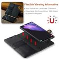 L'étui portefeuille DG.Ming 2-en-1 pour Samsung Galaxy S25 Ultra est une excellente combinaison d'un étui à rabat en cuir et d'une coque magnétique détachable. Cet étui est multifonctionnel, avec des emplacements pour cartes et une poche pour argent, et il garde tout en place. La fermeture par bouton-pression métallique ajoute une sécurité supplémentaire et permet d'utiliser l'étui comme support pour regarder des média en mains-libres. Un excellent design, revêtu de croûte de cuir, offre un bonne prise en main.