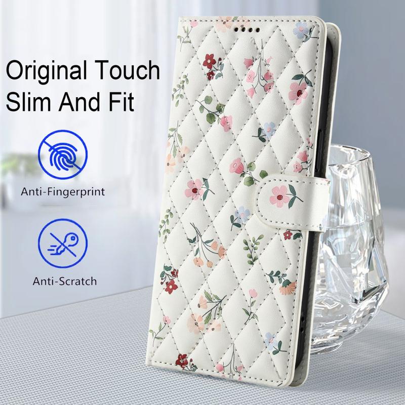 Rafraîchissez votre Samsung Galaxy S26+ avec un portefeuille à rabat fin qui allie protection sécurisée et praticité au quotidien. La face avant surpiquée en losange et le minuscule motif floral ajoutent un style élégant, tandis qu'une coque TPU souple amortit les chutes et qu'un revêtement en polyuréthane protège contre les rayures. Plusieurs fentes pour cartes, une pochette pour argent liquide et une dragonne incluse font de cet étui une solution de transport unique pour les trajets quotidiens, les voyages ou les sorties nocturnes.
