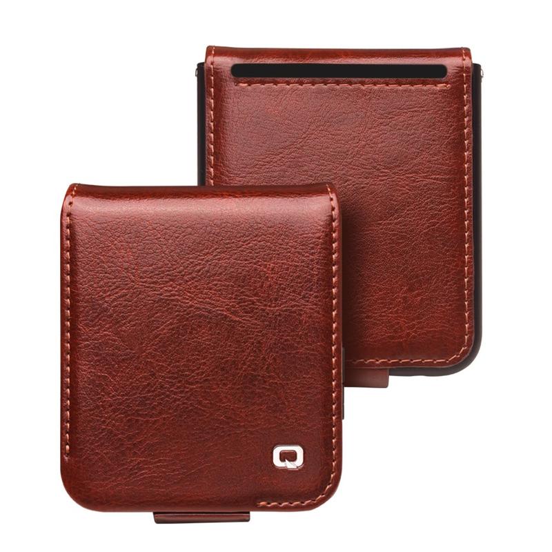 Protègez votre Samsung Galaxy Z Flip5 avec l'étui portefeuille classique de Qialino. Grâce à cet étui élégant, vous aurez toujours toutes vos cartes et l'argent à portée de main.
