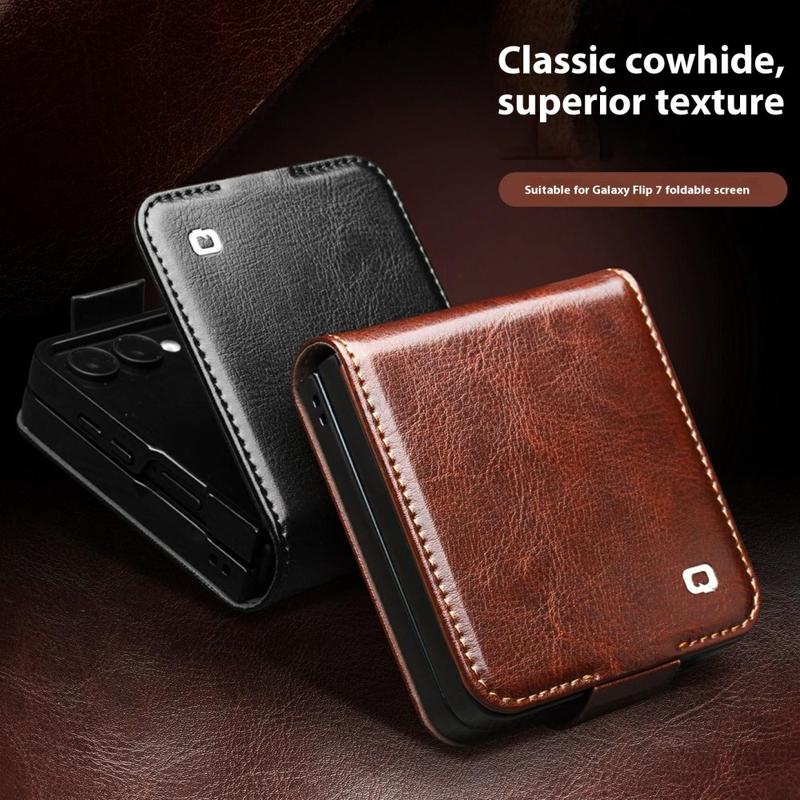 Etui Portefeuille en Cuir Qialino Classic pour Samsung Galaxy Z Flip7