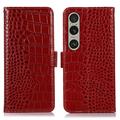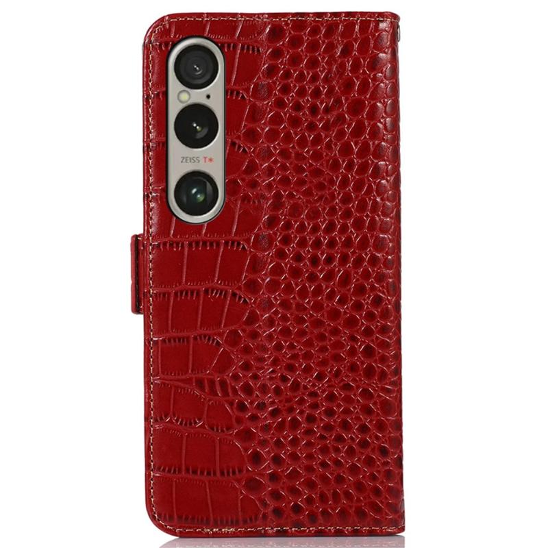 - Étui en cuir de portefeuille de la série Crocodile pour Sony Xperia 1 VI