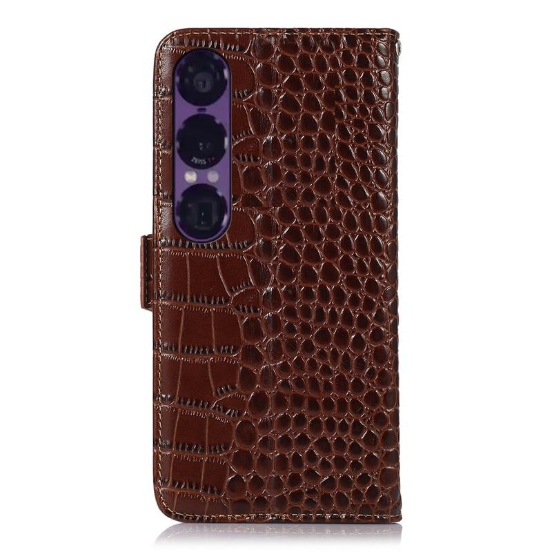 - Étui en cuir de portefeuille de la série Crocodile pour Sony Xperia 1 VII