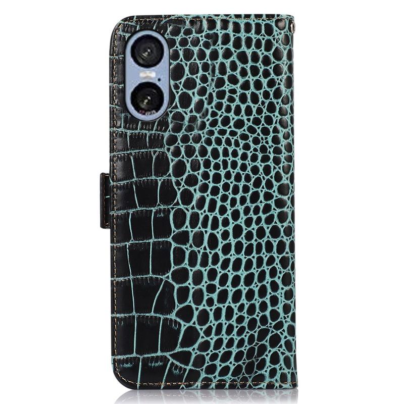 Etui Portefeuille en Cuir avec RFID Série Crocodile pour Sony Xperia 5 VI