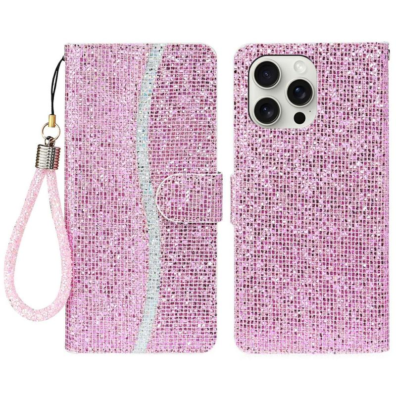 Etui portefeuille à paillettes pour iPhone 16 Pro Max