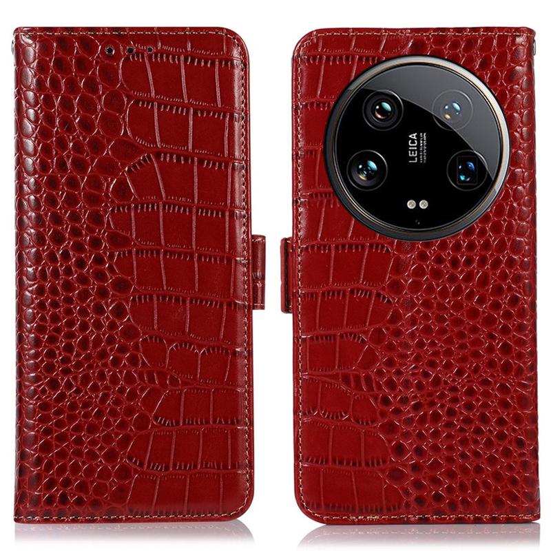 - Étui en cuir de portefeuille de la série Crocodile pour Xiaomi 14 Ultra