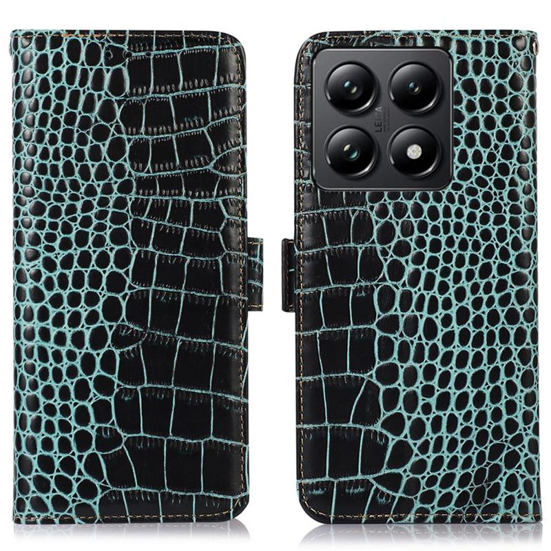 Étui Portefeuille Xiaomi 14T en Cuir avec RFID - Série Crocodile - Vert