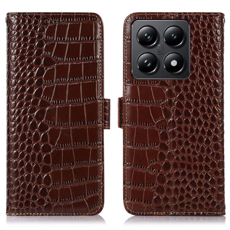 Étui Portefeuille Xiaomi 14T en Cuir avec RFID - Série Crocodile - Marron