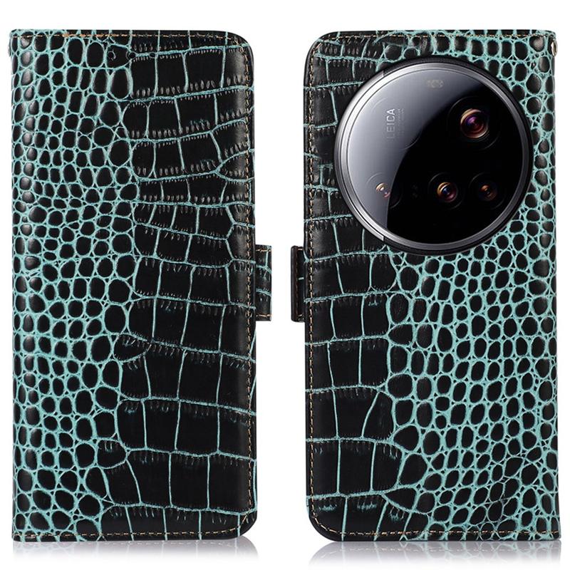 Etui Portefeuille en Cuir avec RFID Série Crocodile pour Xiaomi 15 Ultra
