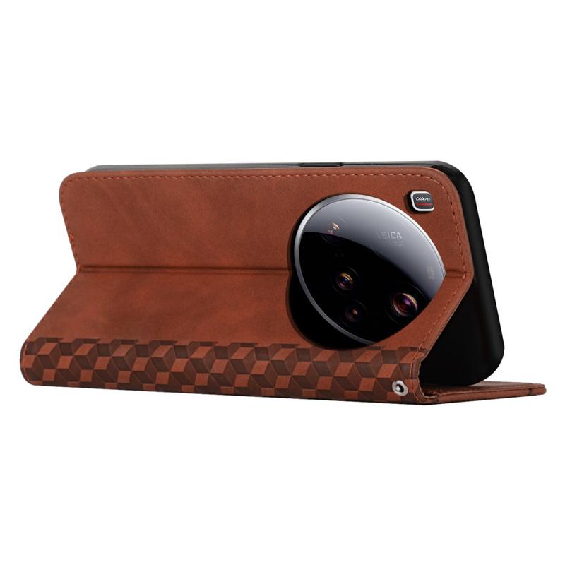Etui portefeuille à motif Rhombus avec fermeture magnétique pour Xiaomi 15 Ultra
