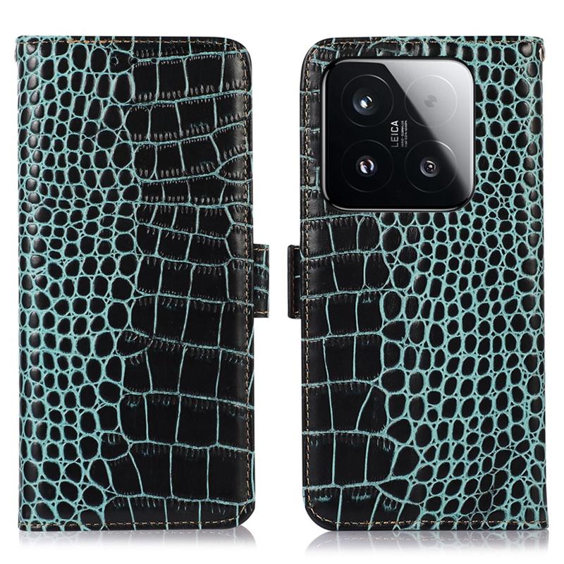 Etui Portefeuille en Cuir avec RFID Série Crocodile pour Xiaomi 15T