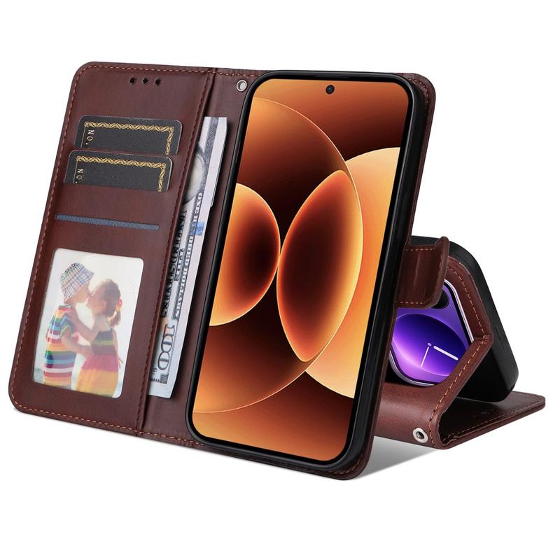 Donnez à votre nouveau Xiaomi 17 Pro Max un look raffiné et vintage tout en remplaçant votre portefeuille de tous les jours. L'extérieur en polyuréthane à la texture Crazy Horse s'associe à une coque TPU absorbant les chocs pour protéger contre les chutes et les rayures, tandis que des poches astucieuses permettent d'organiser les cartes et l'argent.