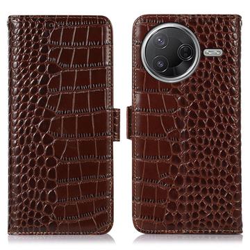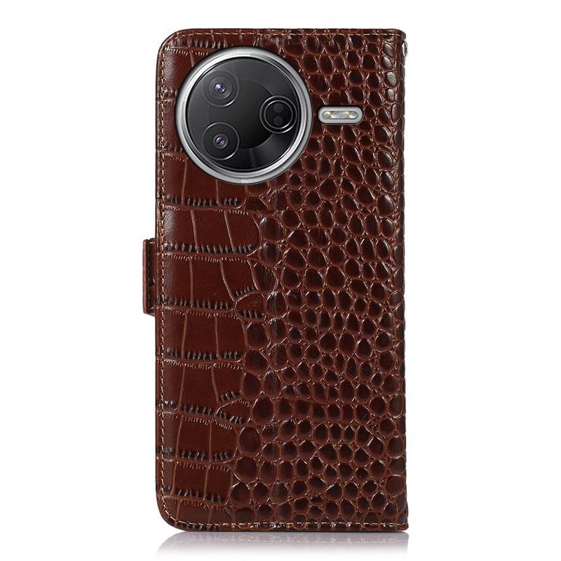 Etui Portefeuille en Cuir avec RFID Série Crocodile pour Xiaomi Poco F7 Pro