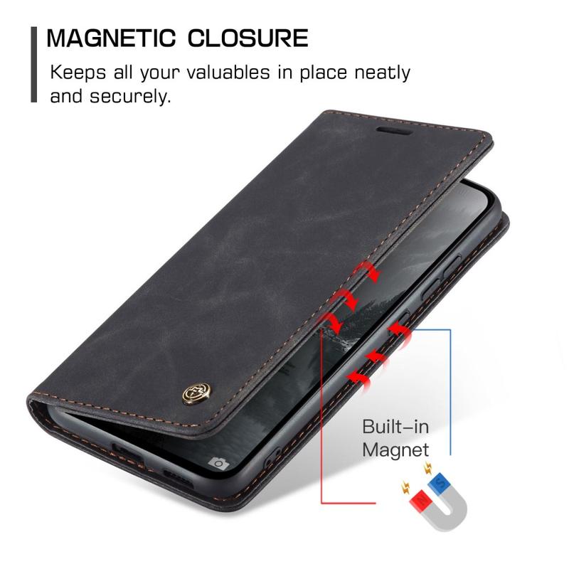 - Les aimants intégrés maintiennent l'étui portefeuille de la série Caseme 013 fermé