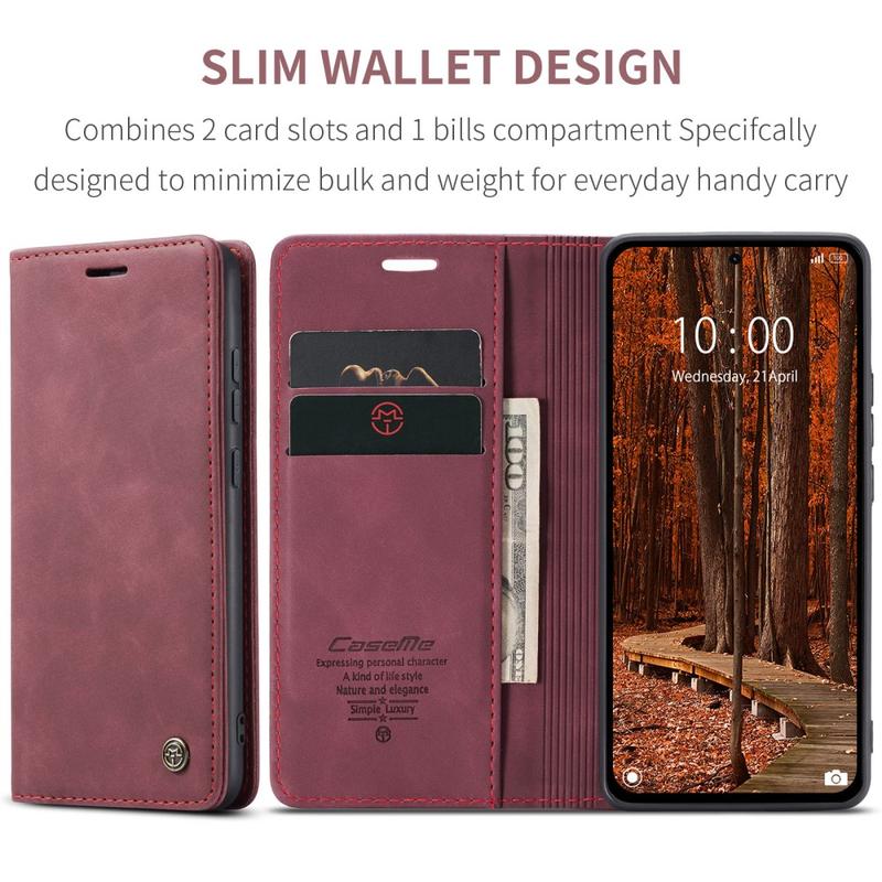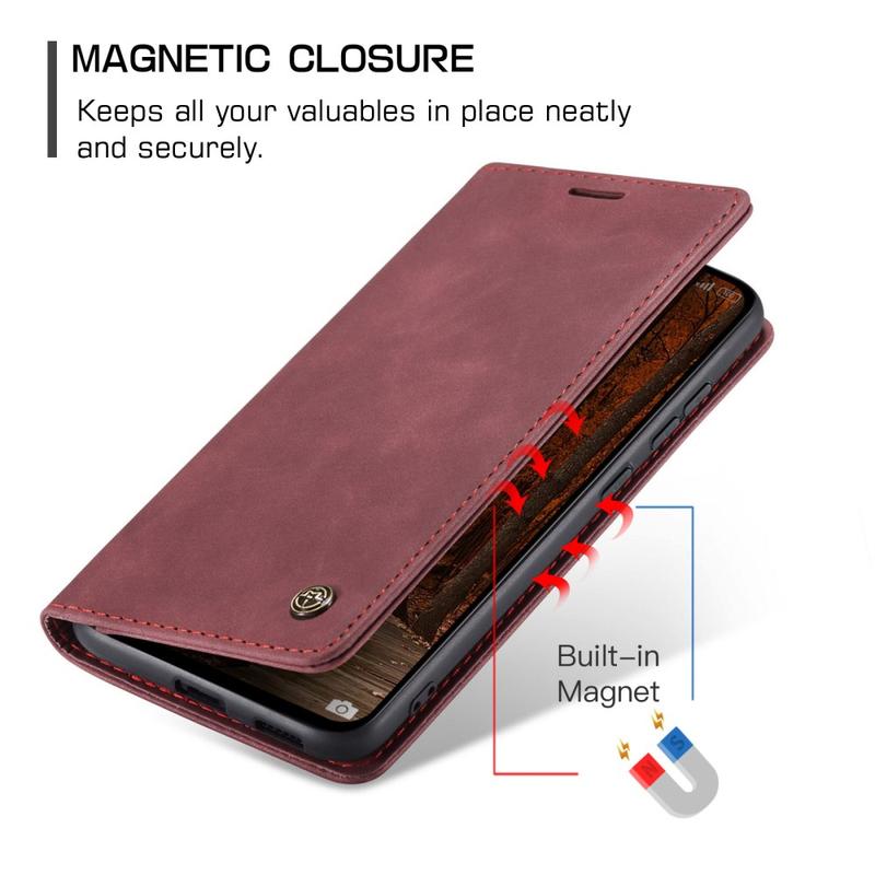 - Les aimants intégrés maintiennent l'étui portefeuille de la série Caseme 013 fermé