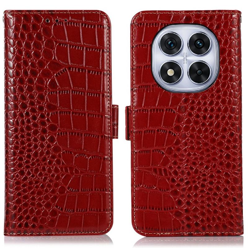 - Étui en cuir de portefeuille de la série Crocodile pour Xiaomi Redmi Note 14 Pro 5G, Poco X7