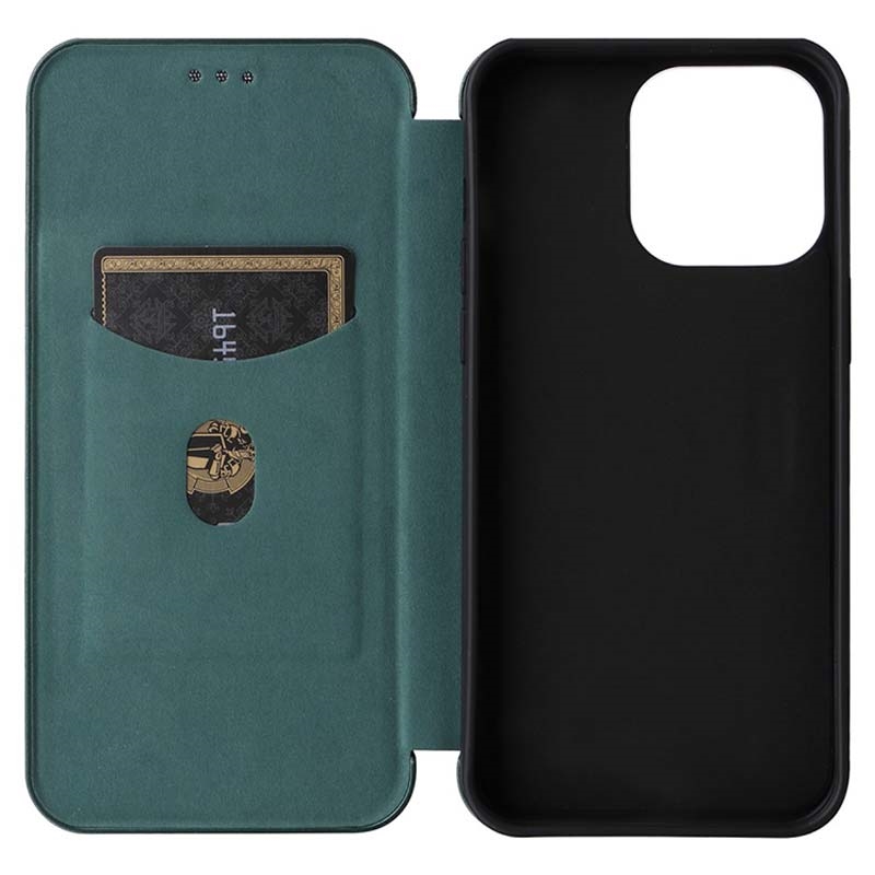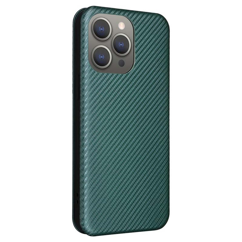 - Étui à rabat texturé en fibre de carbone pour iPhone 15 Pro Max