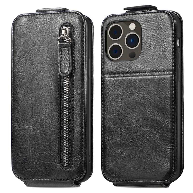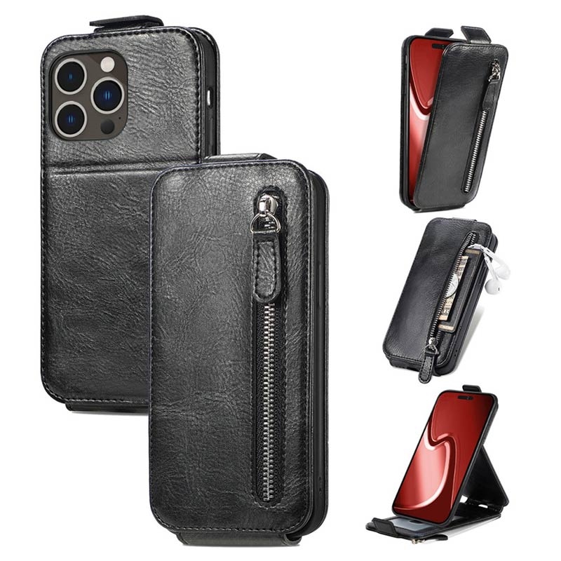 Étui à Rabat Vertical avec Poche Zippée pour iPhone 16 Pro