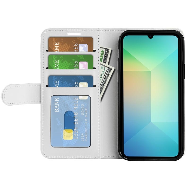 - Cet étui à rabat Samsung Galaxy A06 5G est fait en polyuréthane et TPU