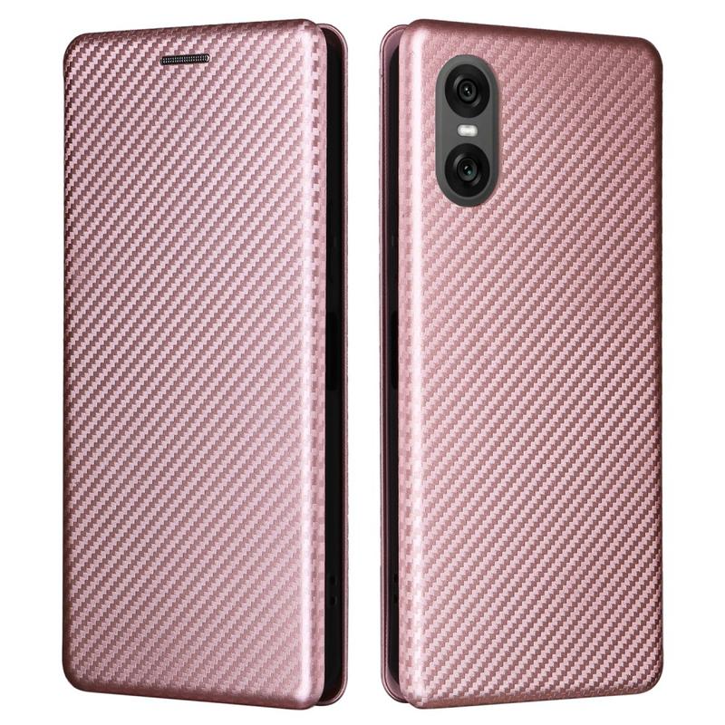 - Étui à rabat texturé en fibre de carbone pour Sony Xperia 10 VI