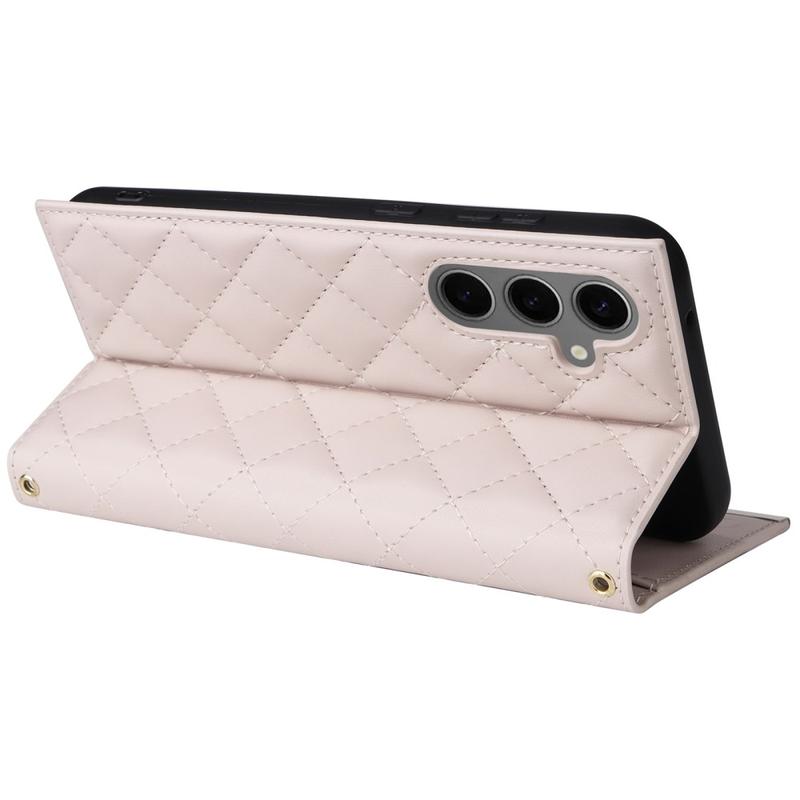 Protégez votre Samsung Galaxy S24+ avec ce luxueux étui portefeuille matelassé. Fabriqué à partir d'un matériau TPU recouvert de cuir PU, cet étui est résistant aux rayures et aux empreintes digitales, ce qui permet à votre téléphone de rester élégant et raffiné. La ligne de couture forme un motif de grille en losange, ajoutant une touche de mode et de beauté à l'étui. Le bord surélevé de l'appareil photo et de l'écran offre une protection efficace contre les rayures, tandis que les découpes précises permettent d'accéder à tous les boutons, ports et autres fonctions. Le design portefeuille permet de ranger facilement les cartes essentielles et l'argent, et les ventouses incluses peuvent servir de support pour une utilisation mains libres. Avec une protection accrue contre les rayures, les chocs, les chutes et les dommages quotidiens, cet étui est également fourni avec une bandoulière et une sangle de poignet pour plus de commodité.