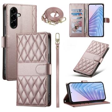 Étui de luxe matelassée avec bandoulière et poignet pour Samsung Galaxy A37 - Étui protectrice à motif en losange