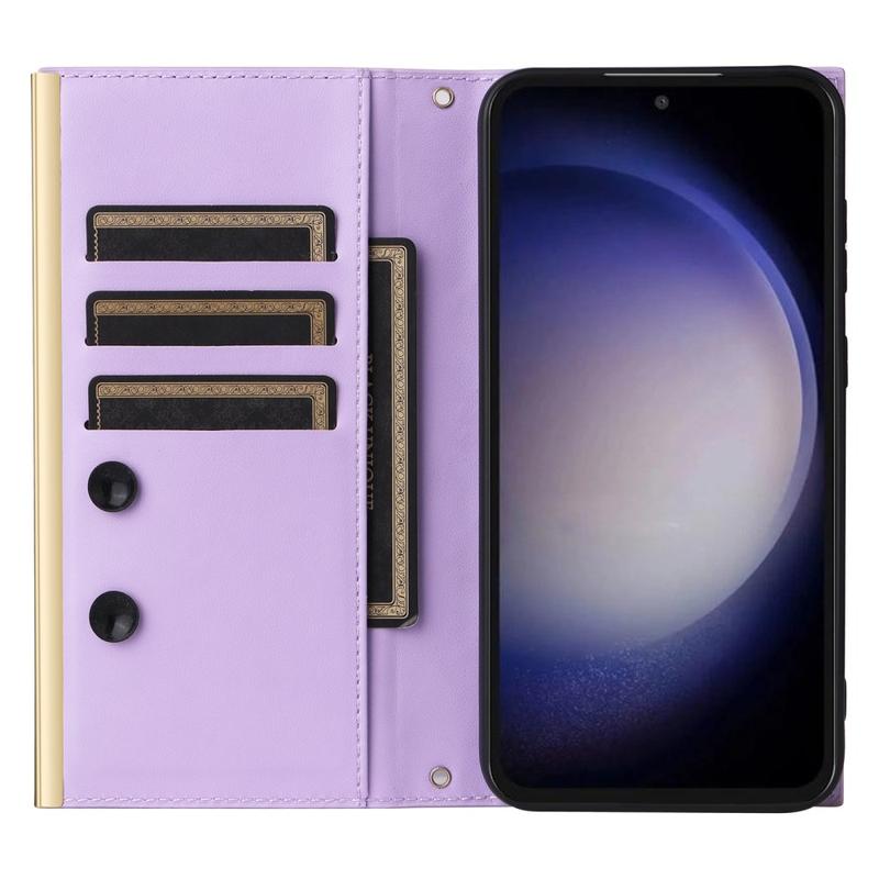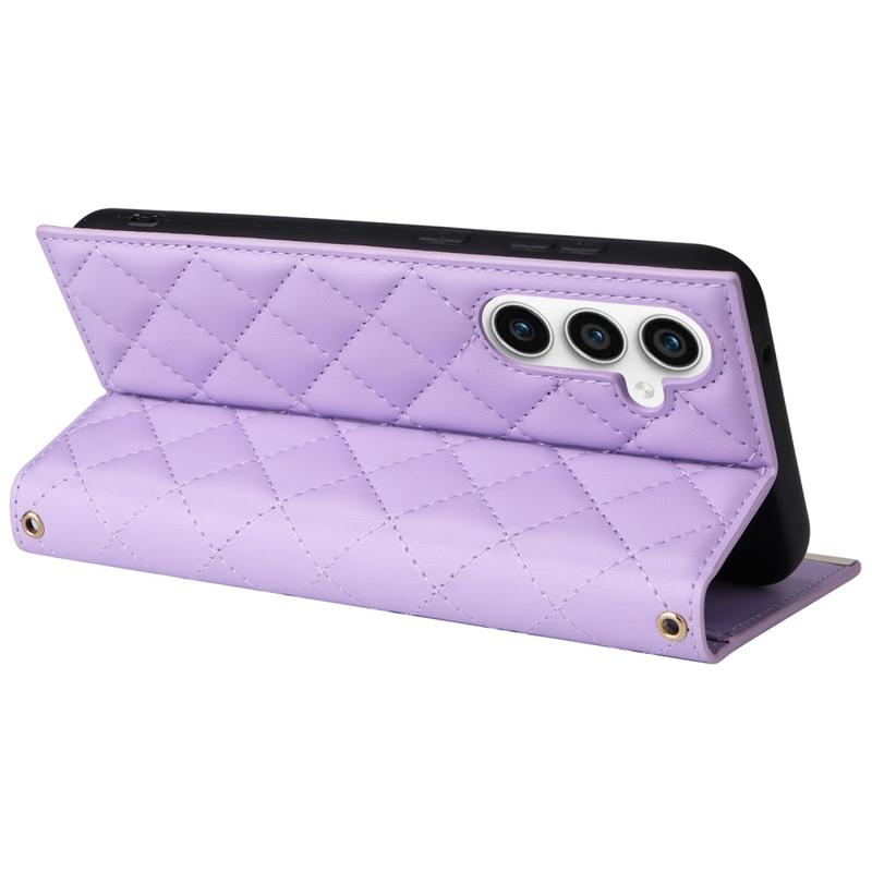 Protégez votre Samsung Galaxy S23 FE avec ce luxueux étui portefeuille matelassé. Fabriqué à partir d'un matériau TPU recouvert de cuir PU, cet étui est résistant aux rayures et aux empreintes digitales, ce qui permet à votre téléphone de rester élégant et raffiné. La ligne de couture forme un motif de grille en losange, ajoutant une touche de mode et de beauté à l'étui. Le bord surélevé de l'appareil photo et de l'écran offre une protection efficace contre les rayures, tandis que les découpes précises permettent d'accéder à tous les boutons, ports et autres fonctions. Le design portefeuille permet de ranger facilement les cartes essentielles et l'argent, et les ventouses incluses peuvent servir de support pour une utilisation mains libres. Avec une protection accrue contre les rayures, les chocs, les chutes et les dommages quotidiens, cet étui est également fourni avec une bandoulière et une sangle de poignet pour plus de commodité.