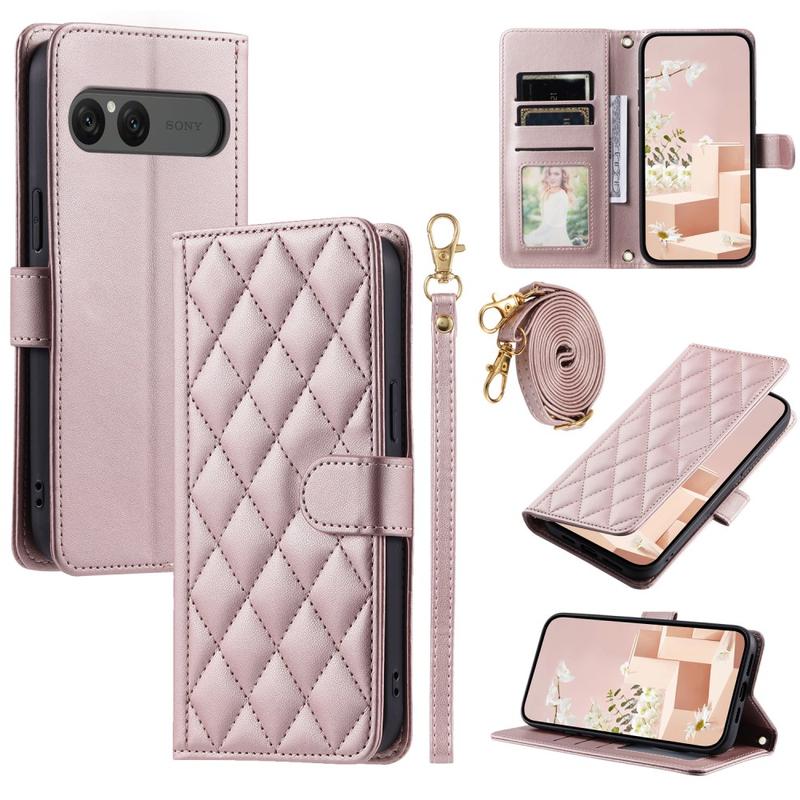 Étui de luxe matelassée avec bandoulière et poignet pour Sony Xperia 10 VII - Étui protectrice à motif en losange