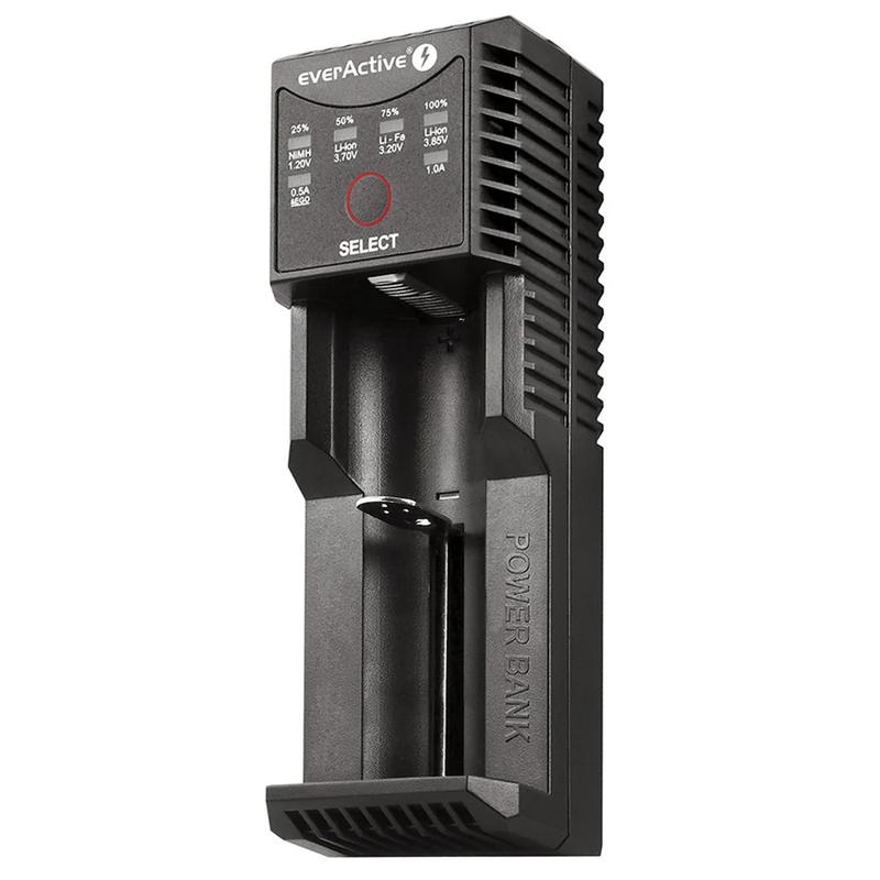 EverActive UC-100C Chargeur de batterie universel USB-C avec fonction de banque d'énergie pour les batteries cylindriques Li-ion et Ni-MH