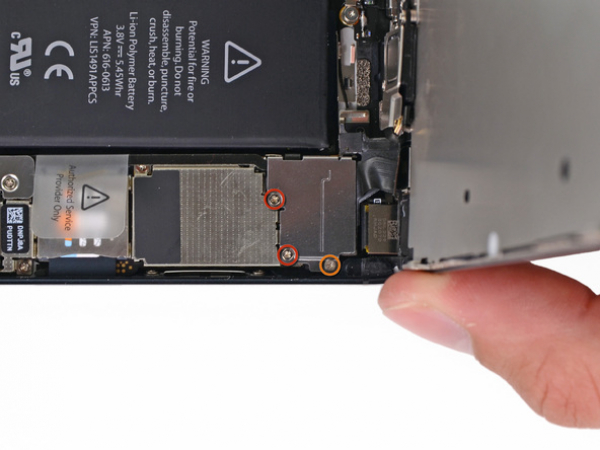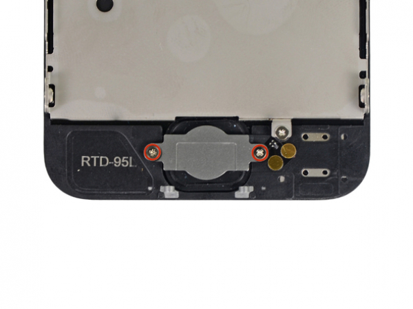 Retirer les deux vis cruciformes 1,3 mm qui fixent le support du bouton d'accueil à l'assemblage d'écran.
