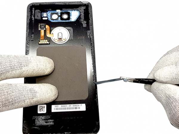 Chauffez les bords du panneau arrière pour ramollir l'adhésif qui le maintient